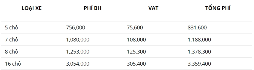 3. Phí bảo hiểm xe ô tô kinh doanh